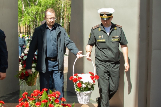 Представители ректората и сотрудники УГТУ возложили цветы к мемориалу.