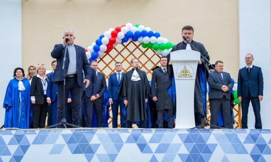 По традиции в торжественной линейке у корпуса «А» УГТУ на Первомайской, 13 приняли участие представители республиканских органов власти, администрации Ухты, руководители ведомств, организаций и предприятий – партнеров Ухтинского государственного технического университета. Высокие гости поздравили студентов и преподавателей с началом учебного года и дали первокурсникам напутствия хорошо учиться и интересно провести студенческие годы.