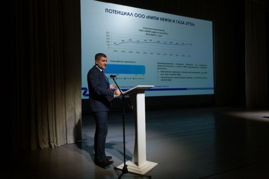 Доклад от УГТУ состоял из двух частей: первая - о результатах научно-технического сотрудничества с ПАО «Газпром» и вторая - предложения по новым формам и форматам этого сотрудничества.