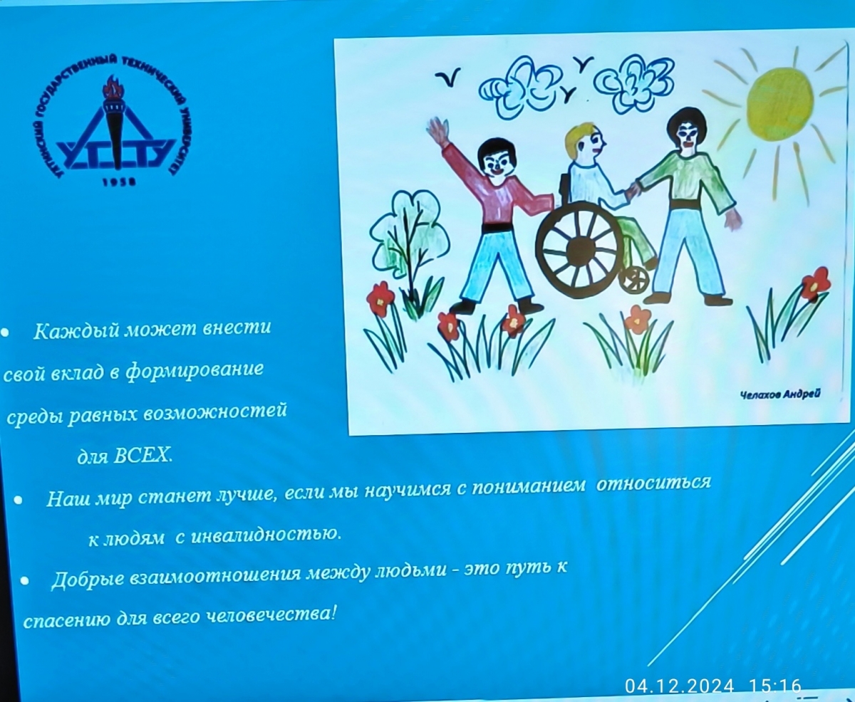 В УГТУ подобные встречи со студентами, посвящённые Международному дню инвалидов, проходят регулярно. Помимо профессиональных знаний, студенты должны развивать культуру понимания инвалидности, чтобы в своей будущей профессиональной деятельности руководствоваться этими знаниями и подходом с позиций духовно-нравственных ценностей.