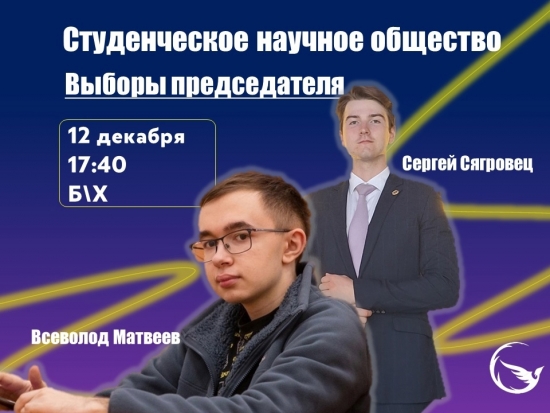В Студенческом научном сообществе грядут перевыборы председателя. Это важное событие, которое определит направление развития научной деятельности в университете на ближайшие годы. Призываем всех активистов студенческого научного общества присоединиться.
