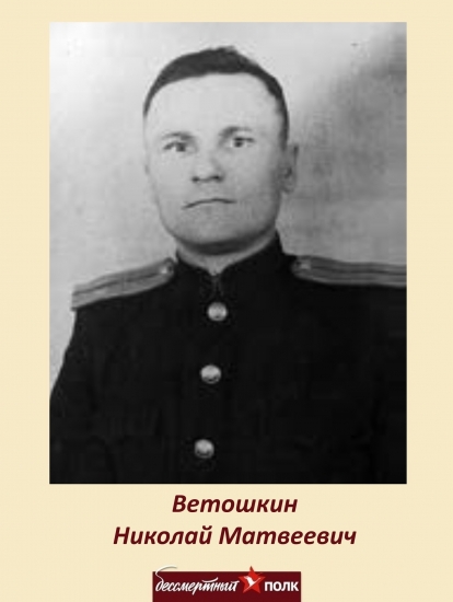 В 1940 г., с 3-его курса Николай Ветошкин был направлен в Ленинградское авиатехническое училище. В июне 1941 г. окончил училище, получив специальность механика по авиавооружению.