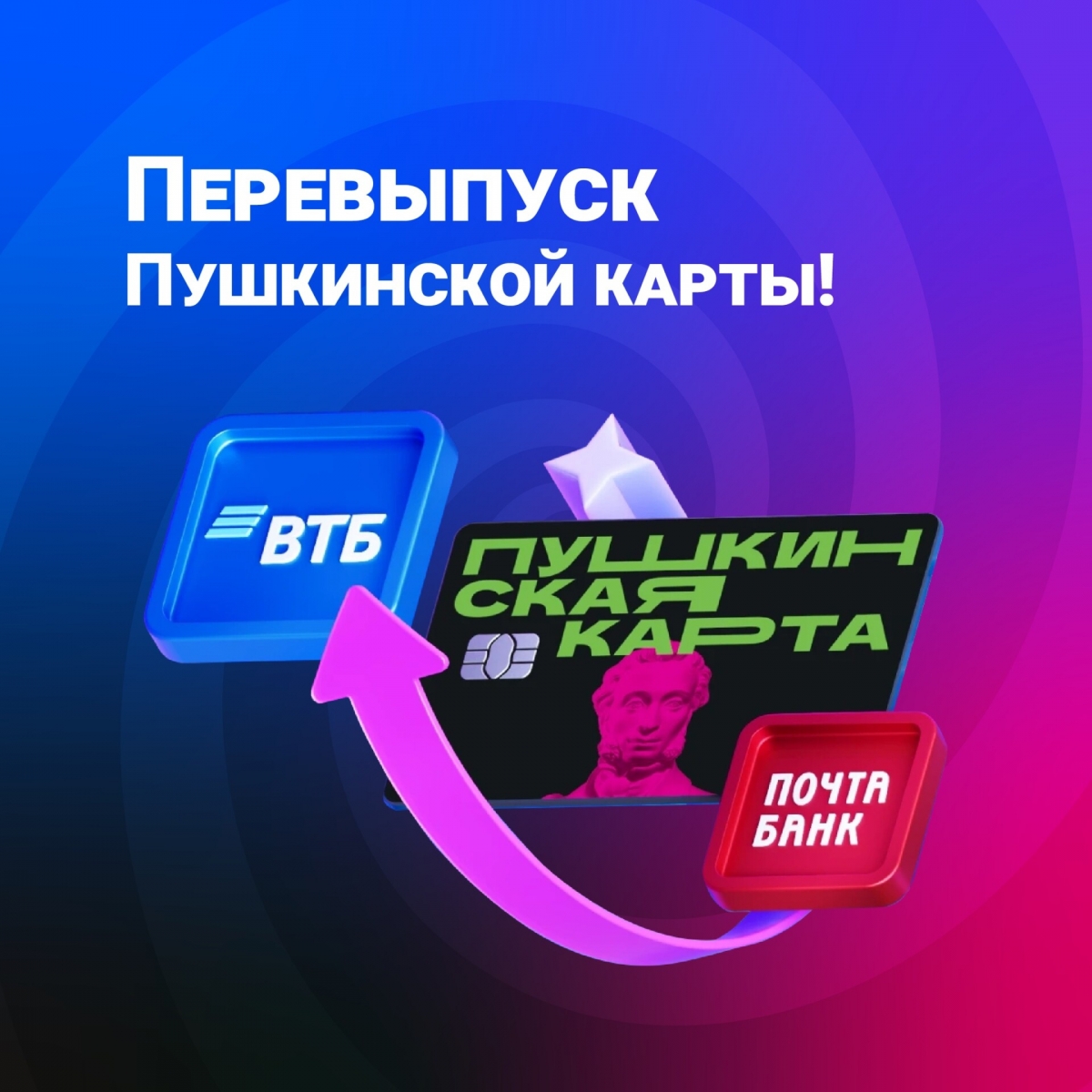 С 1 января 2026 года оператором программы «Пушкинская карта» становится банк ВТБ вместо «Почта Банка». Ваша текущая карта будет работать только до 31 декабря 2025 года.