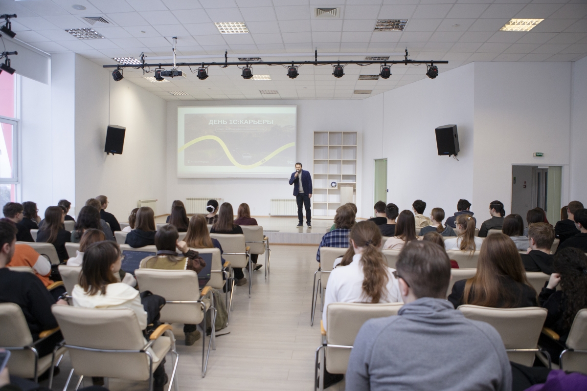 На встрече обсудили ключевые возможности для старта карьеры в экосистеме «1С». Дмитрий Шпаковский не только рассказал о востребованных навыках и подготовке к первому рабочему месту, но и развеял популярные мифы о профессии. Он подчеркнул, что в индустрии нужны не только программисты, но и экономисты, аналитики, тестировщики и архитекторы.