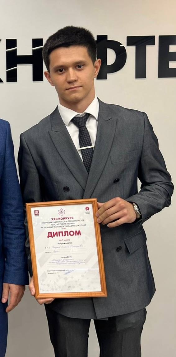 В ноябре в Перми подвели итоги 22-го конкурса молодых работников и специалистов ООО «ЛУКОЙЛ-ПЕРМЬ» на лучшую научно-техническую разработку. В финале, где соревновались 25 лучших проектов всего предприятия, достойно выступил и наш студент. Бронзовым призером престижного корпоративного конкурса стал Никита Смирнов, студент направления «Нефтегазовое дело» Усинского филиала УГТУ и одновременно геолог Цеха добычи нефти и газа №1 ТПП «Усинскнефтегаз».