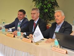 18 июня в АНО «Исполнительная дирекция «Казань 2013» состоялась пресс-конференция, посвященная итогам работы инспекционного визита технических делегатов FISU. На конференции со стороны FISU присутствовали С. Дувис, М. Ванденплас, М. Бухел и директор по СМИ и коммуникациям Деян Сусович, с российской стороны - заместитель директора Департамента нормативного и правового обеспечения государственной политики Министерства спорта, туризма и молодежной политики Российской Федерации Владимир Матлашевский, генеральный директор АНО «Исполнительная дирекция «Казань 2013» Владимир Леонов и его заместитель Азат Кадыров.
