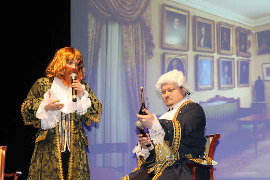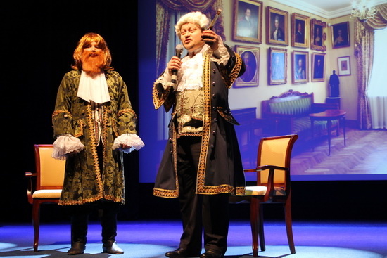Начался торжественный концерт с инсценировки на тему «Ухта — родина первой российской нефти». На какое-то время конгресс-холл университета перенесся в XVIII век, и зрителям предстала сцена возможной встречи русского рудоискателя Федора Савельевича Прядунова в приемной графа Шувалова с создателем первого российского университета Михаилом Васильевичем Ломоносовым. И речь они вели о важности просвещения и о том, что когда-нибудь на реке Ухте может возникнуть нефтяных дел университет... В роли М. В. Ломоносова очень органично выглядел проректор по учебно-воспитательной работе и социальным вопросам Д. Н. Безгодов.