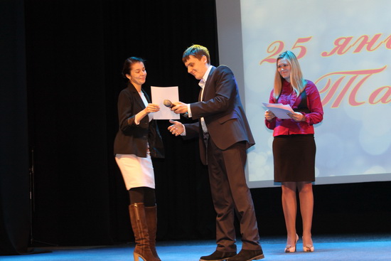 С приветственным словом выступил ректор УГТУ, профессор Н. Д. Цхадая, который подчеркнул, что в этом году Татьянин день в университете особый: его впервые как одна семья отмечали вместе студенты и учащиеся университетского комплекса УГТУ. Поздравили с праздником и отметили благодарственными письмами самых активных студентов, принимающих участие в научных, творческих и спортивных мероприятиях, проректор по научной работе и инновационной деятельности В. Е. Кулешов, проректор по учебно-воспитательной работе и социальным вопросам Д.Н. Безгодов, проректор по общим вопросам С.В. Штоль.