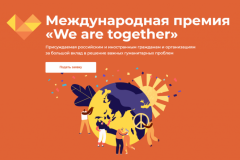 До 15 августа продолжает принимать заявки на участие трек «We are together» Международной Премии #МЫВМЕСТЕ. Премия учреждена по поручению Президента РФ по итогам встречи с участниками Общероссийской акции взаимопомощи #МЫВМЕСТЕ от 23 июля 2020 года. В 2022 году при поддержке Минобрнауки России организован трек «We are together» Премии, посвященный теме «Социальные изменения через волонтерство».
