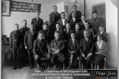 Эта фотография датирована сентябрём 1934 года. На ней запечатлены руководители Главного управления лагерей НКВД СССР со студентами Ухто-Печорского горно-нефтяного техникума в посёлке Чибью.