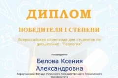 Студенты первого курса Воркутинского филиала УГТУ Юлия Гималетдинова и Ксения Белова приняли участие во Всероссийской дистанционной олимпиаде по химии и геологии, организованной Всероссийским СМИ «Образовательный портал «Академия Интеллектуального Развития». Обе девушки получили дипломы победителей I степени. Благодарственными письмами за подготовку победителей награждены и их преподаватели – доцент кафедры разработки и эксплуатации месторождений полезных ископаемых А. Б. Билалов и доцент кафедры строительства и экономики Н. И. Ратиер.